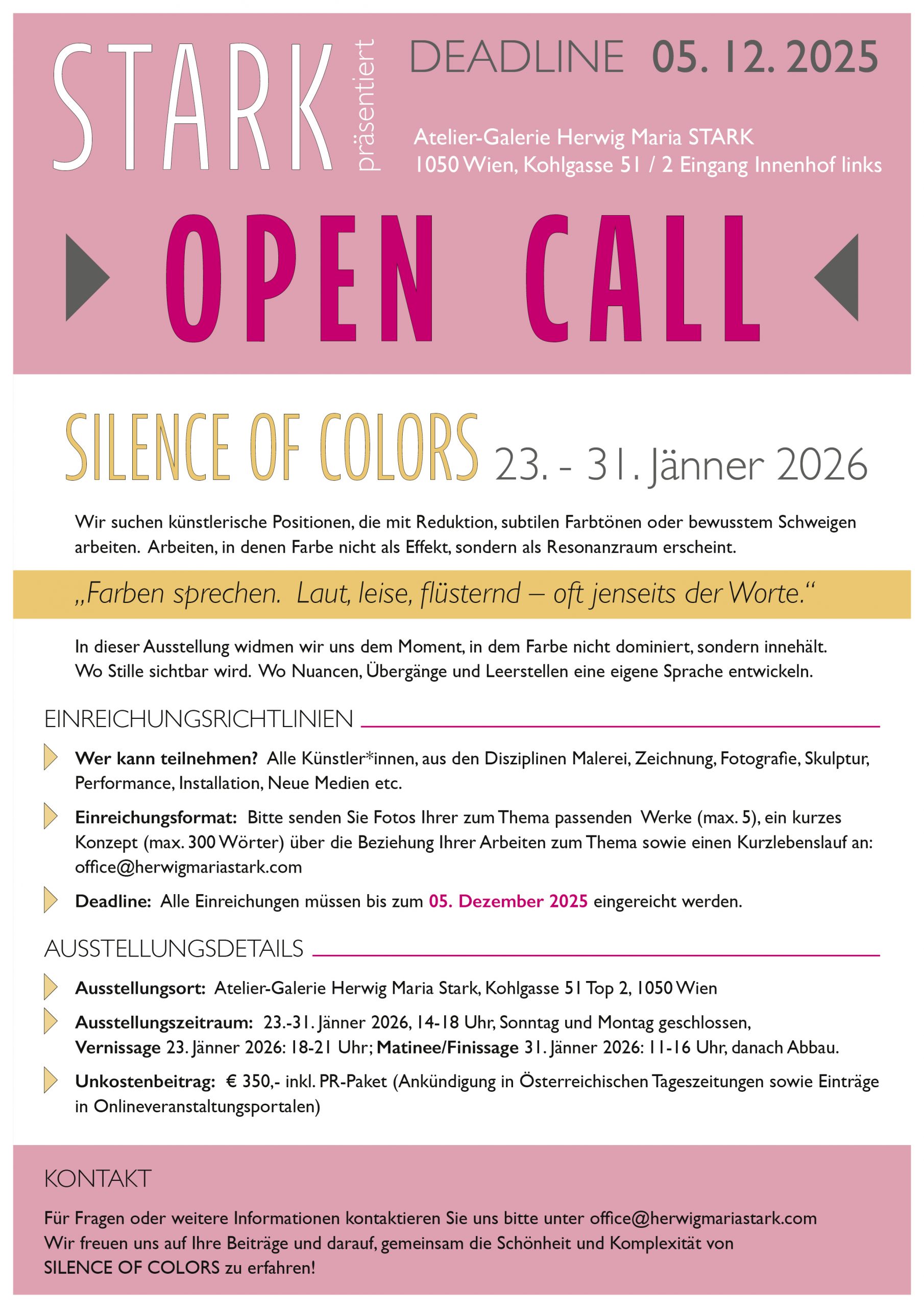 OPEN CALL – SILENCE OF COLORS, 23. – 31. Jänner 2026